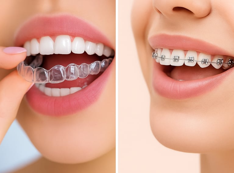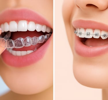 Both work effectively. Braces are best for complex cases, while aligners are more comfortable and invisible, preferred by adults.